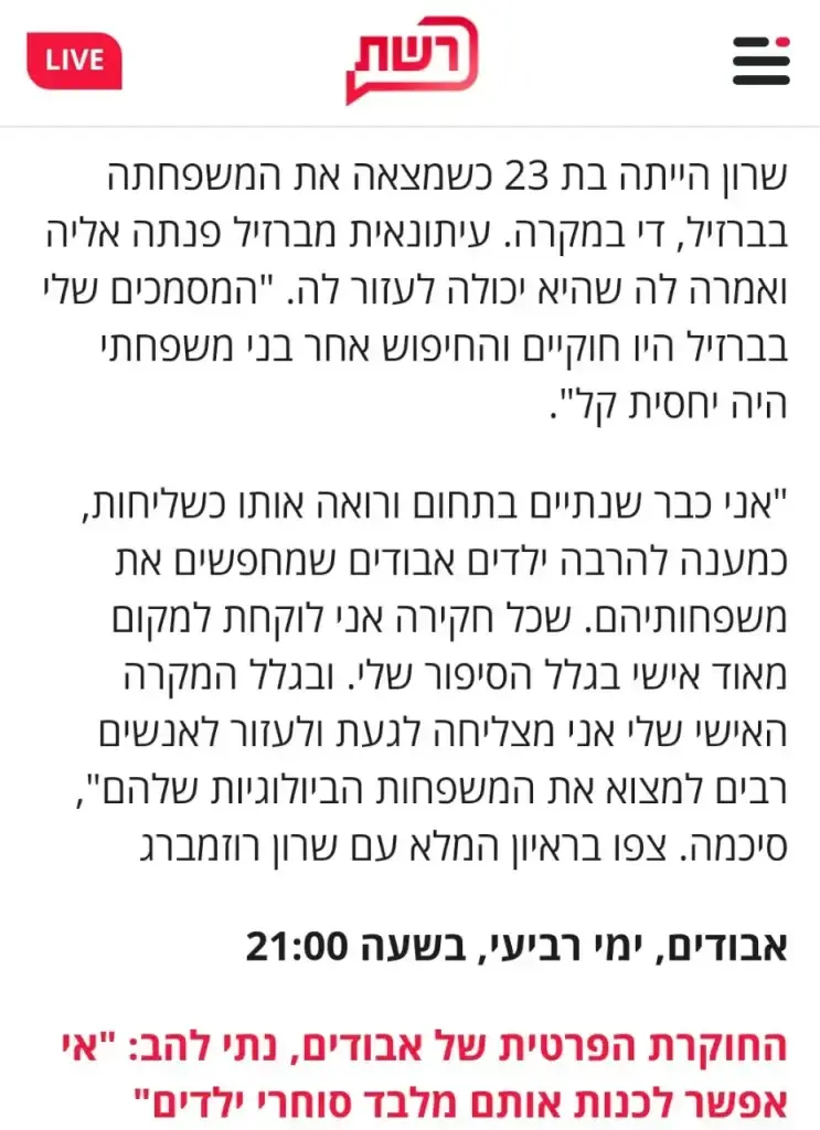 כתבה ברשת 2017 – שרון חוקרת המשרד